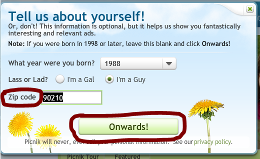 Picnic භාවිතා කිරීම සඳහා එහි ලියාපදිංචි වීම අත්යාවශ්ය නොවේ. නමුත් නොමිලේ ලබාදෙන Account එකක් සඳහා ලියාපදිංචි වීම වැදගත්වේ. එමඟින් ඔබ සකස්කරණ රූප ගබඩා කර තබා ගැනීමට හැකි වනු ඇත. එවිට ඒවා නැවත සකස් කර ගැනීමට ද හැකිවනු ඇත.