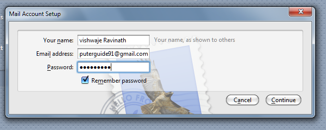 5. Continue බොත්තම ඔබන්න. ඉන්පසු මඳක් රැඳී සිටන්න. එවිට ඊමේල් ගිණුමට අදාල සැකසීම් සවයංක්රීයව Thunder Bird විසින් ලබා ගනු ඇත.
